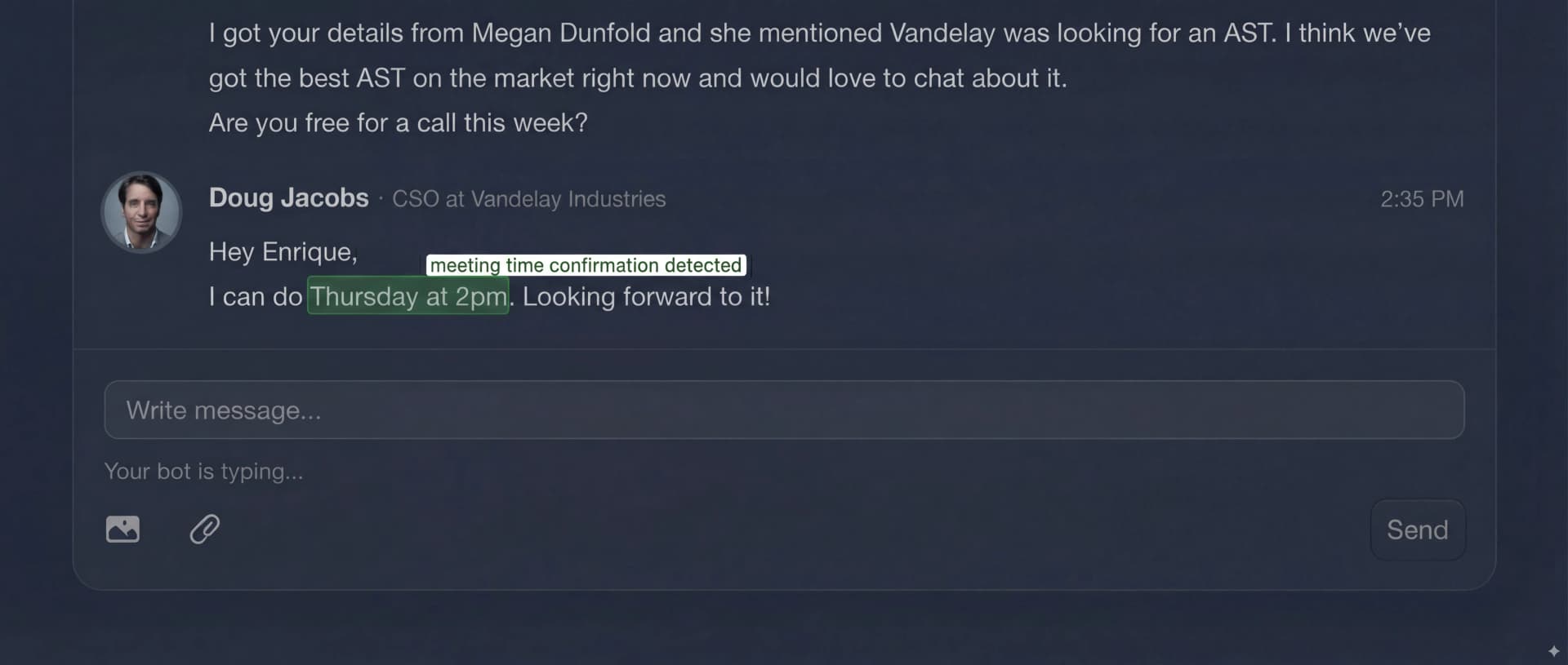 AI detects high-intent inquiries and responds within seconds, so you never miss a hot prospect.