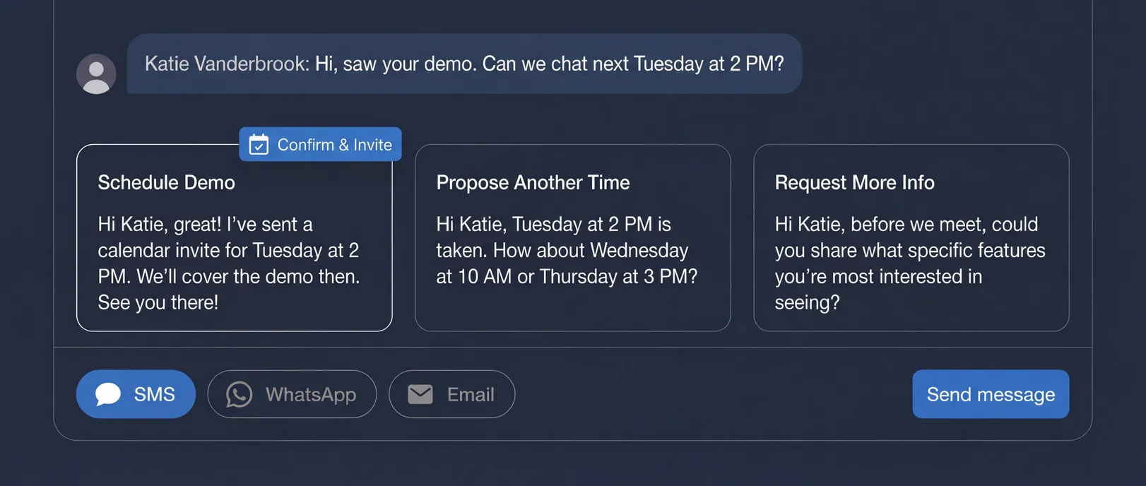 AI detects high-intent inquiries and responds within seconds, so you never miss a hot prospect.
